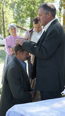 After the baptism we had communion. Vladimir, a pastor from a nearby village prays for Ivan.