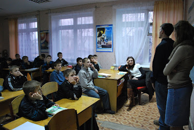 Sharing with the boys in the Fontanka boys home just outside of Odessa