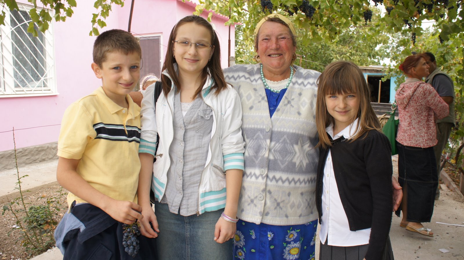 People enjoyed eathing the grapes that grow in the church yard after the service.