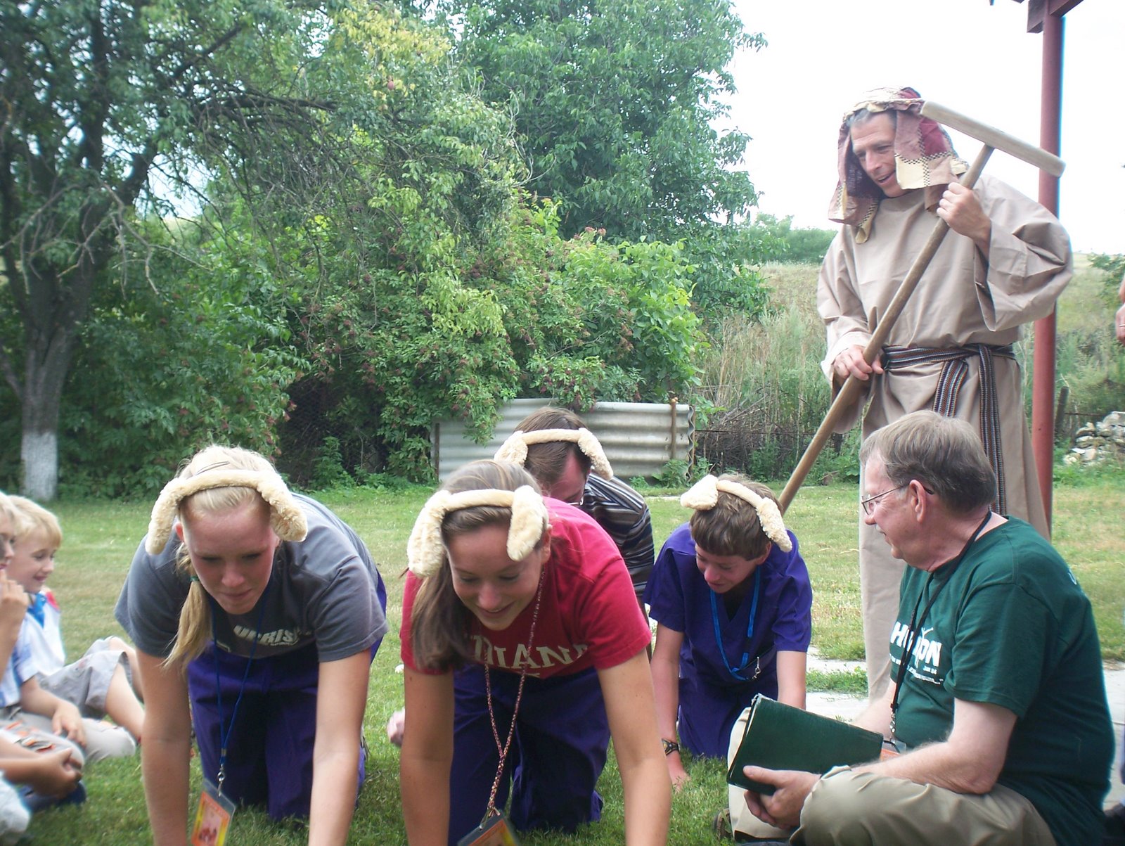 The children gathered in the church lawn to watch a skit about the lost sheep.